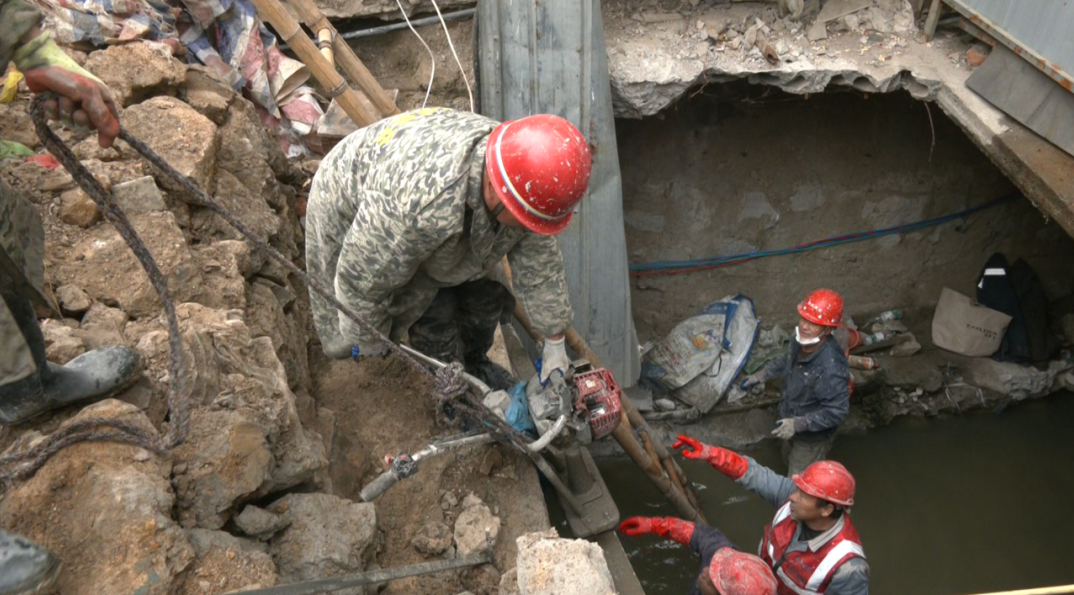 為確保施工安全,避免工人沼氣中毒,前期已組織施工單位進行敷設(shè)照明設(shè)施,開挖通風(fēng)口,確保地下空氣流通。同時,施工前,工人們都需要全副武裝,戴上安全帽、口罩,穿上橡膠防護服進入河道作業(yè)。無論是肆意飛濺的污水,還是令人作嘔的氣味。工人們?nèi)匀粓允貚徫?,爭分奪秒地搶抓工程進度。