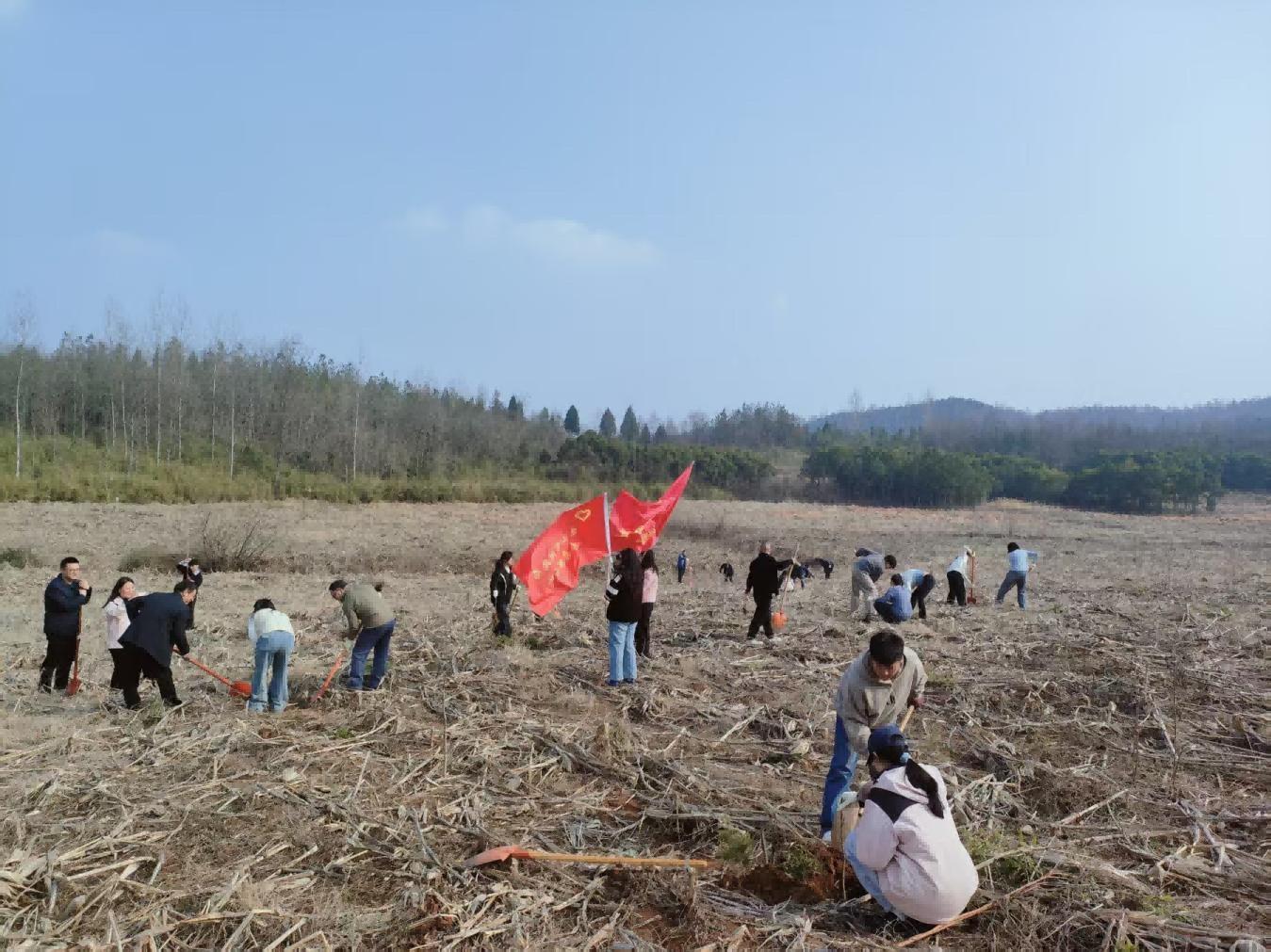 植樹現(xiàn)場,紅旗招展,人頭攢動。干部職工與村民混合編組,揮鍬挖坑、扶苗培土、提桶澆水,配合默契。