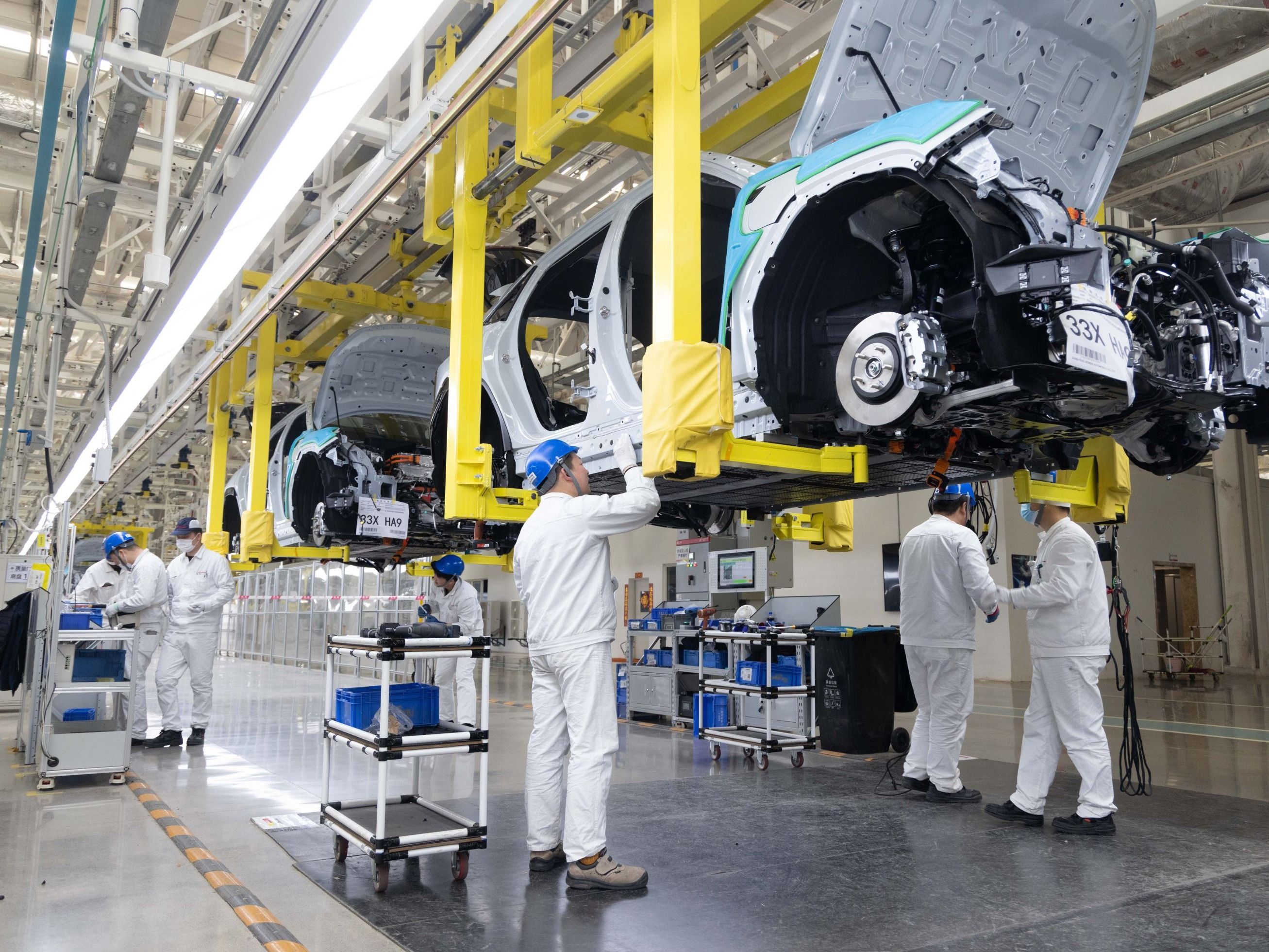 嵐圖汽車工廠里,嵐圖汽車正在加緊生產(chǎn)中。通訊員孫曉飛 攝
