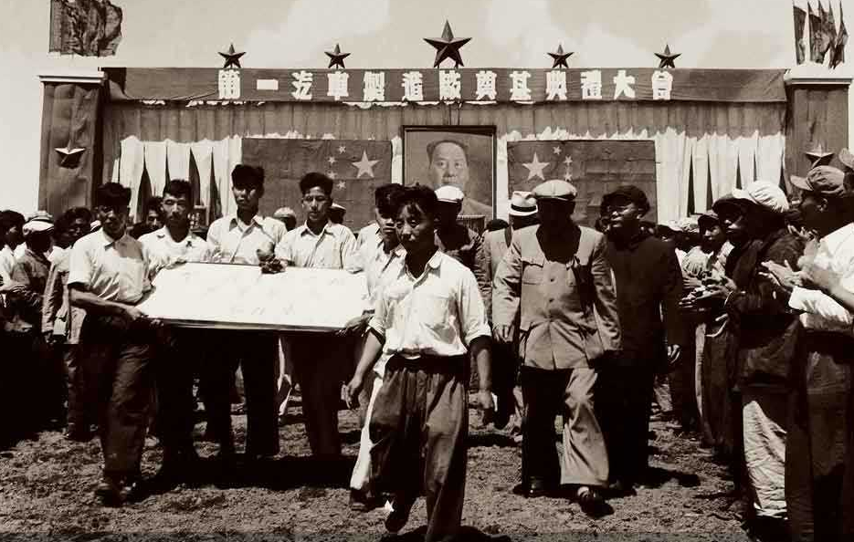 △1953年7月15日,長春第一汽車制造廠奠基大會現(xiàn)場。圖片來源:央視新聞