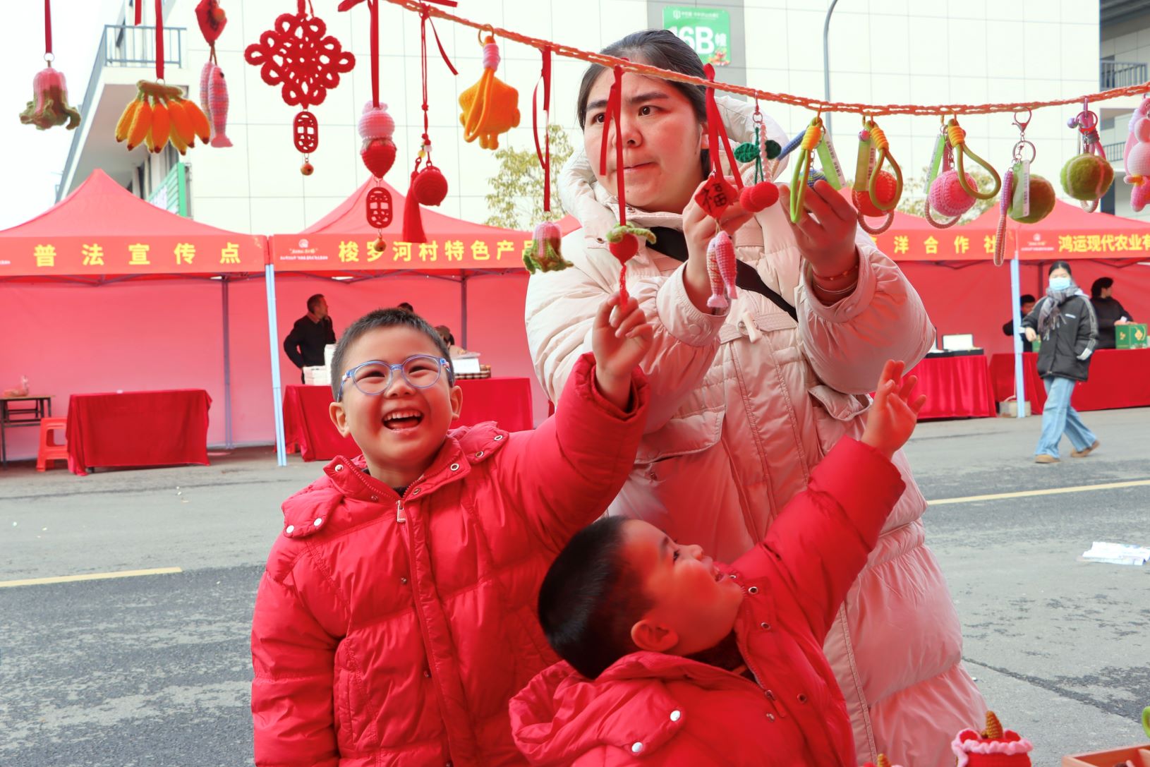 據(jù)了解,本次活動(dòng)將持續(xù)至2月28日。現(xiàn)場(chǎng)精心布置了9大特色展區(qū),特色農(nóng)產(chǎn)品展示區(qū)集中推介京山橋米、茶油等本土好物;美食市集匯聚各類(lèi)風(fēng)味小吃與餐飲企業(yè)推出的團(tuán)年宴套餐;車(chē)輛、家電、酒品、生活用品及房企展銷(xiāo)區(qū)提供從代步工具、家用電器到品質(zhì)住房的一站式選購(gòu)服務(wù);民俗展示區(qū)呈現(xiàn)傳統(tǒng)民俗文創(chuàng),并邀請(qǐng)書(shū)法老師現(xiàn)場(chǎng)寫(xiě)春聯(lián)、送福字;宣傳區(qū)則開(kāi)展法律、反詐知識(shí)普及等。為增強(qiáng)參與感,現(xiàn)場(chǎng)還設(shè)置了抓雞、投壺、套圈等趣味互動(dòng)小游戲,吸引不少家庭參與體驗(yàn)。