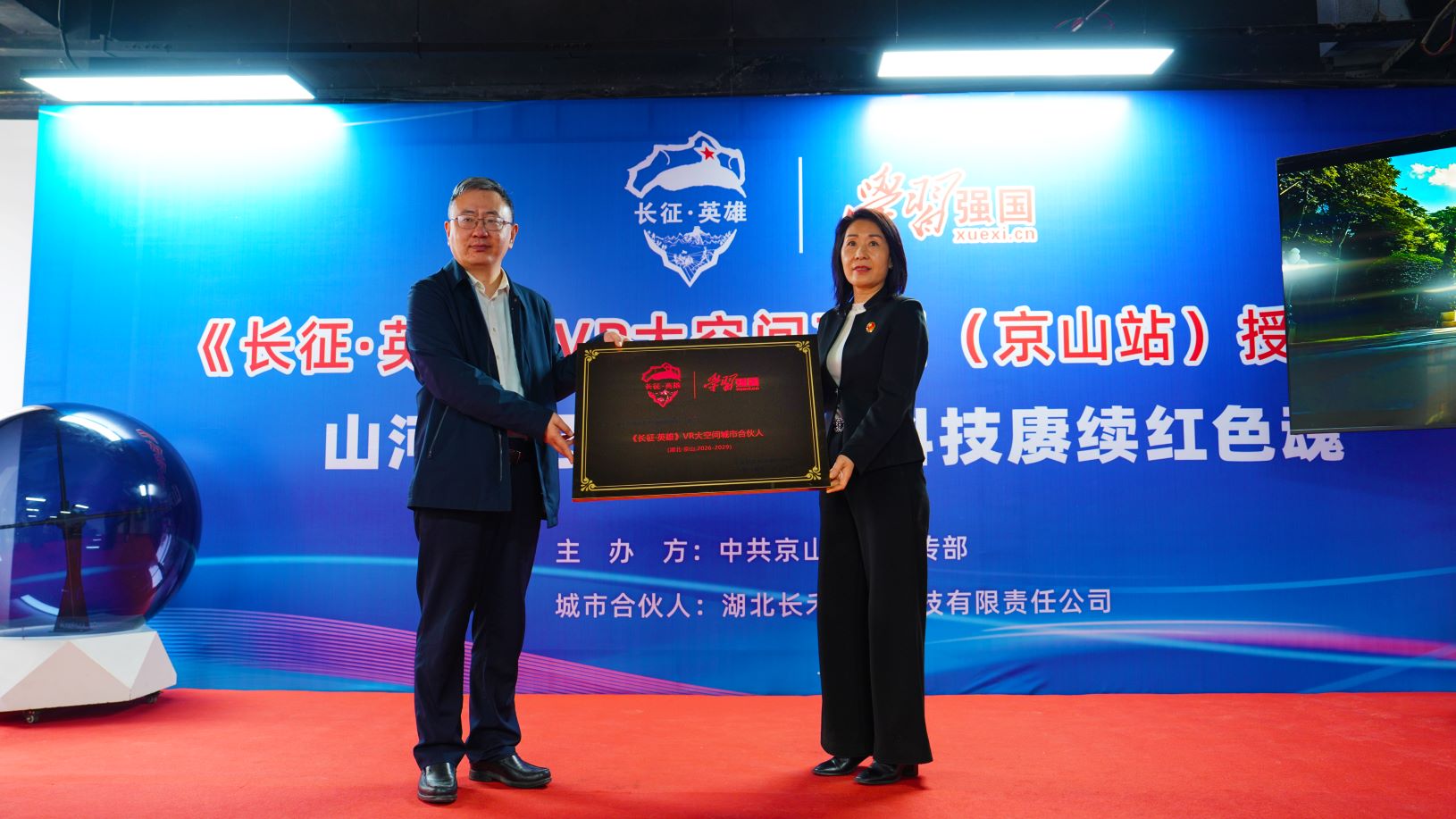 3月26日,“學(xué)習(xí)強國”《長征·英雄》VR大空間項目(京山站)授牌儀式在京山市舉行。湖北省委講師團副主任張鵬出席儀式并為“學(xué)習(xí)強國”《長征·英雄》VR大空間項目(京山站)授牌?!皩W(xué)習(xí)強國”《長征?英雄》VR大空間相關(guān)負責(zé)人、張文秋親屬代表以及社會各界專家學(xué)者出席儀式。京山市委書記何洪濤致歡迎辭,市政協(xié)主席易紅梅主持儀式。