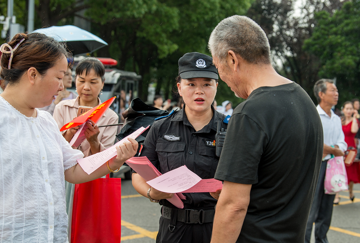 巡特警大隊和考點屬地派出所以“定點+流動”巡邏模式開啟全天候守護,快速處置各類突發(fā)事件;交警部門對考點周邊道路實施分級管控,護考鐵騎隨時待命;考點門前開通“閃電辦證”服務(wù),市民之家公安綜合窗口及派出所戶籍窗口均為考生開通“綠色通道”,提供延時服務(wù);聯(lián)合承楓義警隊等志愿服務(wù)力量,通過發(fā)放傳單、擺攤設(shè)點等宣傳形式,緩解家長們陪考的緊張情緒,增強安全防范意識。