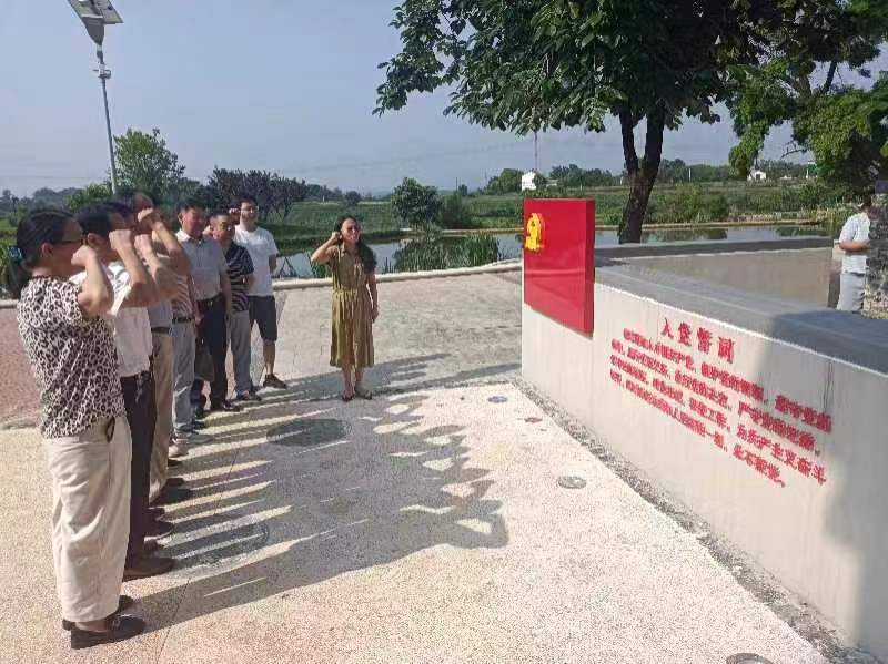 5月23日,市委老干部局組織機關(guān)單位離退休黨員干部開展五月主題黨日活動?!拔抑驹讣尤胫袊伯a(chǎn)黨,擁護黨的綱領(lǐng),遵守黨的章程……”在孫橋鎮(zhèn)青樹嶺村張文秋故居,全體黨員干部面對鮮紅的黨旗,重溫入黨誓詞。旗