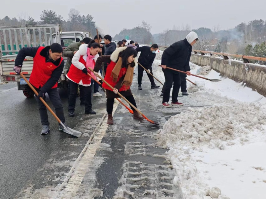 2月6日,市審計(jì)局志愿者來到隨岳高速三陽路段鏟冰除雪,方便高速車輛通行,保障過往群眾行車安全,清掃出了一條“平安”回家路。由于山區(qū)公路積雪較厚,路面結(jié)冰成塊,清掃難度大。盡管天氣寒冷,但志愿者們依舊干