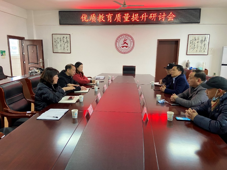 (優(yōu)質(zhì)教育質(zhì)量提升研討會(huì))近日,湖北省中小學(xué)校長協(xié)會(huì)校外教育管理專業(yè)委員會(huì)秘書長付小林、華中師范大學(xué)資產(chǎn)公司副總經(jīng)理衛(wèi)金磊、華大新傳教育集團(tuán)董事長楊文武、湖北省中小學(xué)區(qū)域教聯(lián)體專家易萬俊一行到京山一中