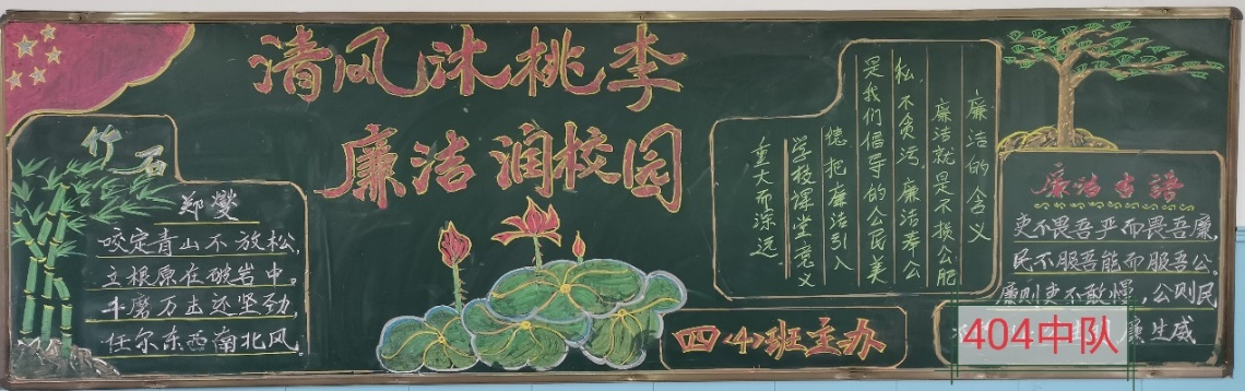 11月18日,新市一小開展“清廉伴我行”主題黑板報評比活動。各班積極組織學(xué)生圍繞“清廉”這一主題,精心設(shè)計版面,以圖繪廉、以文述廉,體現(xiàn)了對清廉之風(fēng)的崇尚,對清廉之志的認同。各班黑板報緊扣主題,內(nèi)容豐