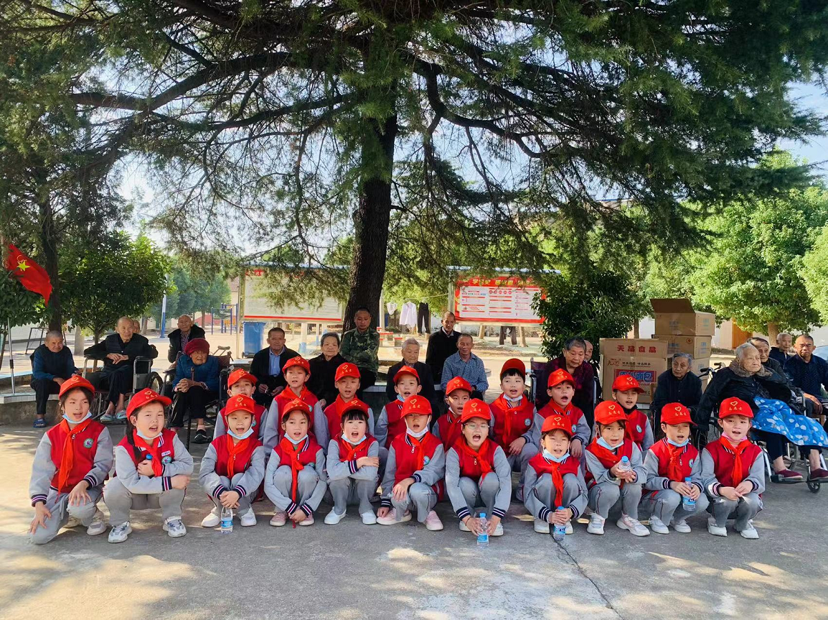 (三一中隊(duì)學(xué)生們?yōu)槔先藗兯蜏嘏妥8#?月29日,曹武鎮(zhèn)中心小學(xué)三一中隊(duì)學(xué)生開(kāi)展“重陽(yáng)節(jié)”敬老愛(ài)老主題活動(dòng),為曹武鎮(zhèn)朱嶺陽(yáng)光家園敬老院的老人們送去了新時(shí)代少先隊(duì)員的關(guān)心和祝福?;顒?dòng)中,少先隊(duì)員們幫助老