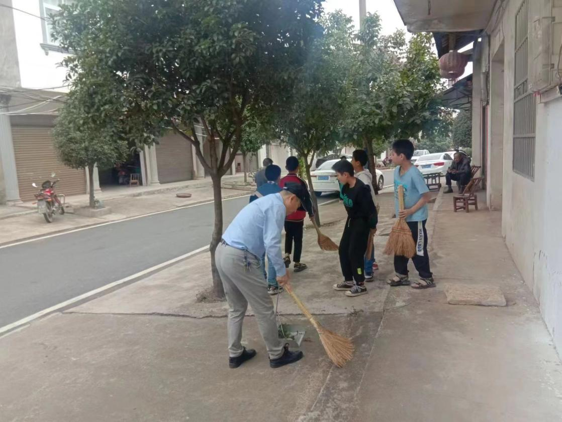 (黨員干部帶領(lǐng)學(xué)生打掃街道)9月29日,孫橋鎮(zhèn)小學(xué)組織10余名黨員干部和40余名學(xué)生組成志愿服務(wù)隊(duì)開(kāi)展國(guó)慶節(jié)前美化一條街行動(dòng)?;顒?dòng)中,環(huán)境衛(wèi)生大掃除志愿服務(wù)隊(duì)隊(duì)員們深入孫橋街幸福路開(kāi)展環(huán)境衛(wèi)生大掃除。