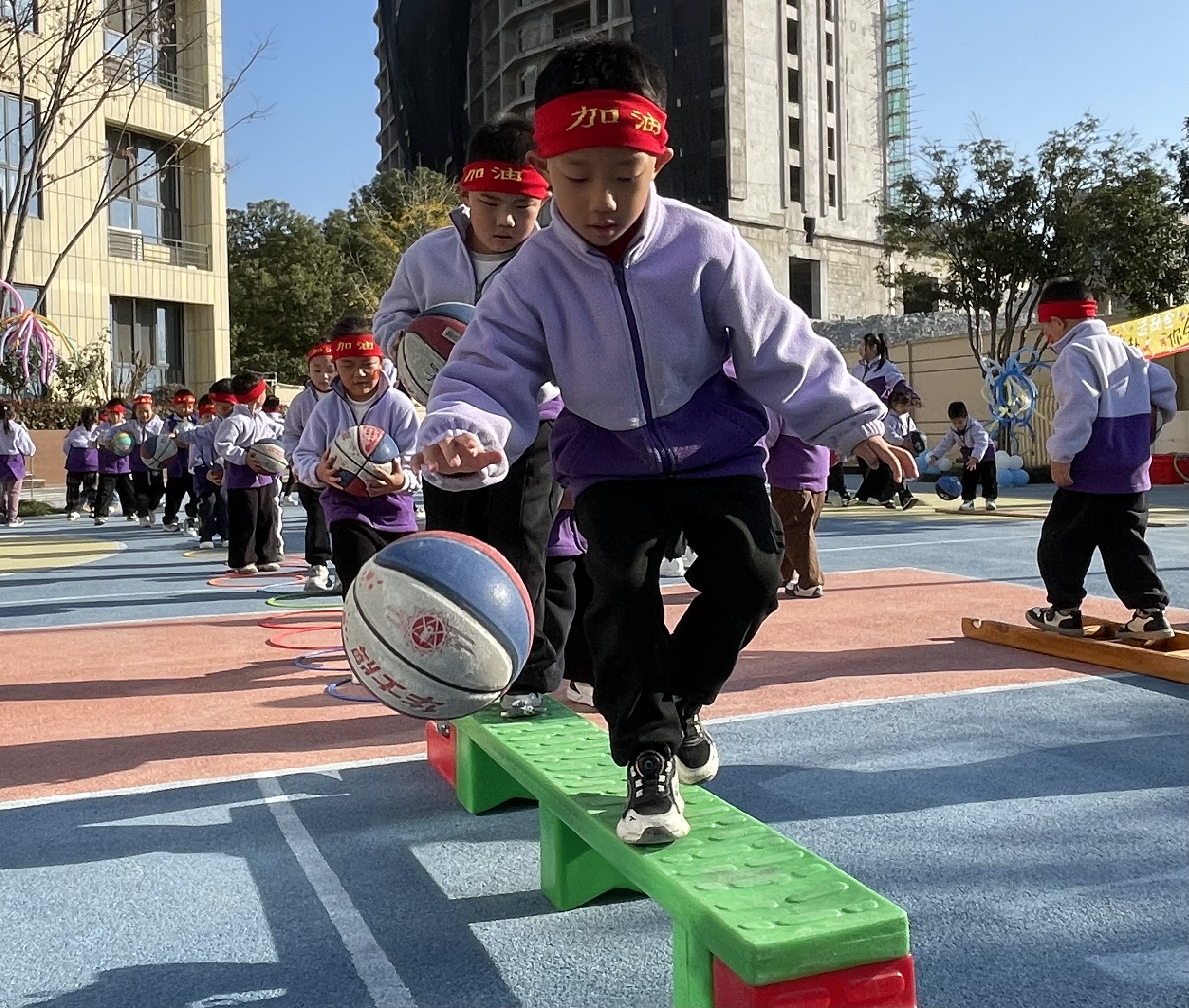 聯(lián)投園區(qū)圍繞“迎籃而上?追球夢(mèng)想”,點(diǎn)燃籃球激情?;盍λ纳涞幕@球操拉開序幕,親子趣味賽接連開展?!靶∥浵佭\(yùn)球”“拍球過河”等環(huán)節(jié),既考驗(yàn)?zāi)?,又凝聚親情與團(tuán)隊(duì)力量。小小籃球,拍響的是成長(zhǎng)的節(jié)拍,傳遞的是協(xié)作的快樂。