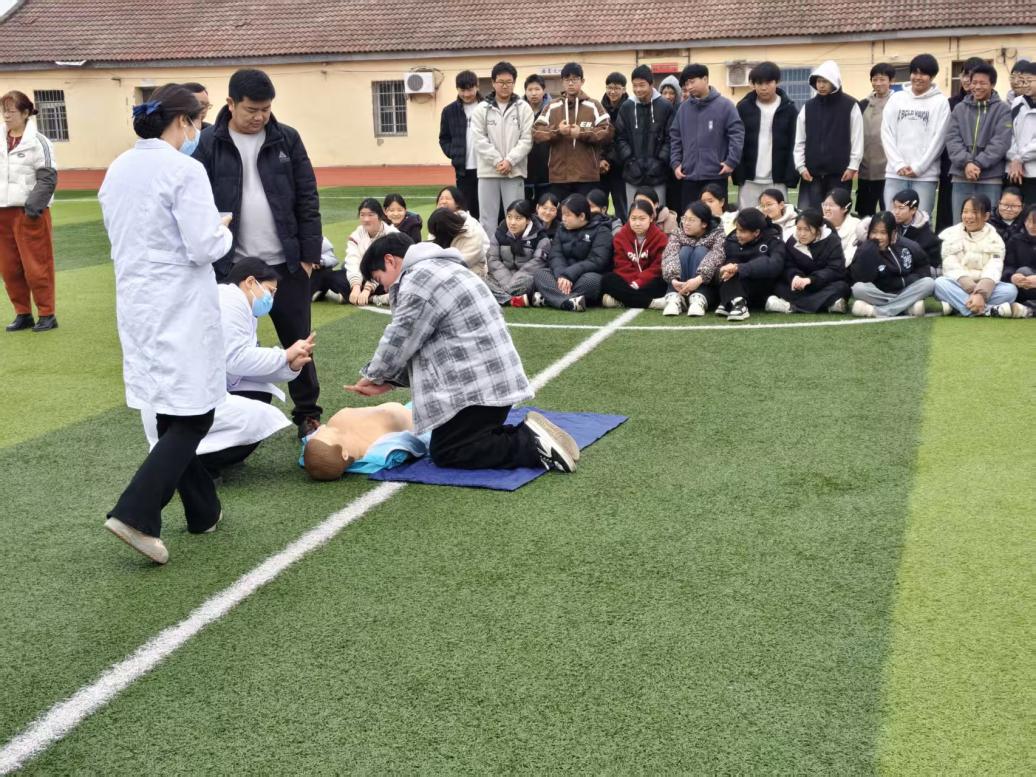 培訓(xùn)伊始,醫(yī)護人員結(jié)合校園生活中可能遇到的突發(fā)狀況,深入淺出地講解了心肺復(fù)蘇術(shù)(CPR)操作要點。在心肺復(fù)蘇講解環(huán)節(jié),醫(yī)護人員借助醫(yī)用模擬人進行全流程示范,從手掌貼放、手臂發(fā)力,到仰頭抬頦、口對口吹氣,每一個動作都標(biāo)準(zhǔn)規(guī)范、細致到位。