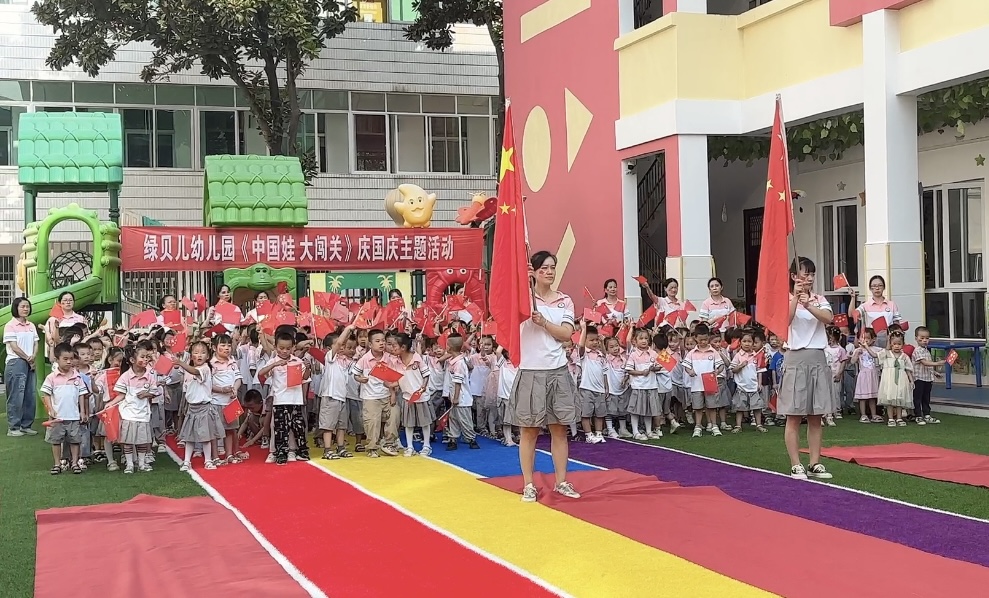 金秋好時(shí)節(jié),潤(rùn)物細(xì)無聲。9月29日,綠貝兒幼兒園開展《中國娃 大闖關(guān)》“慶國慶”主題運(yùn)動(dòng)活動(dòng)。收藏“五星紅旗迎風(fēng)飄揚(yáng),勝利的歌聲多么嘹亮”。操場(chǎng)上,全體師生在這滿懷激情,斗志昂揚(yáng)的歌聲中齊聚操場(chǎng),孩子