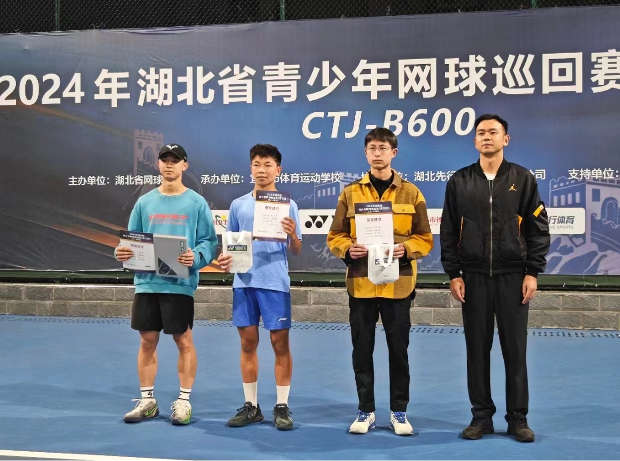 4月6日至7日,2024年湖北省青少年網(wǎng)球巡回賽(第三站)在宜昌市體育運動學(xué)校舉行。本次設(shè)有U18組男子單打、女子單打,均96簽。經(jīng)過兩天的激烈角逐,京山一中的吳梓航、李東翰、何錦陽分別獲得第二名、第