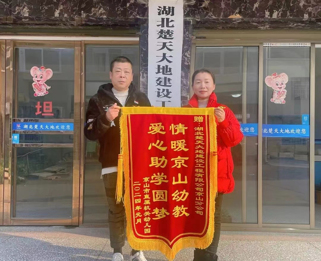 1月27日,市直屬機(jī)關(guān)幼兒園向湖北楚天大地建設(shè)工程有限公司京山分公司贈予錦旗,對該公司的資助表示感謝。日前,湖北楚天大地建設(shè)工程有限公司京山分公司向市直機(jī)關(guān)幼兒園捐贈資金10萬元,支持我市學(xué)前教育工作