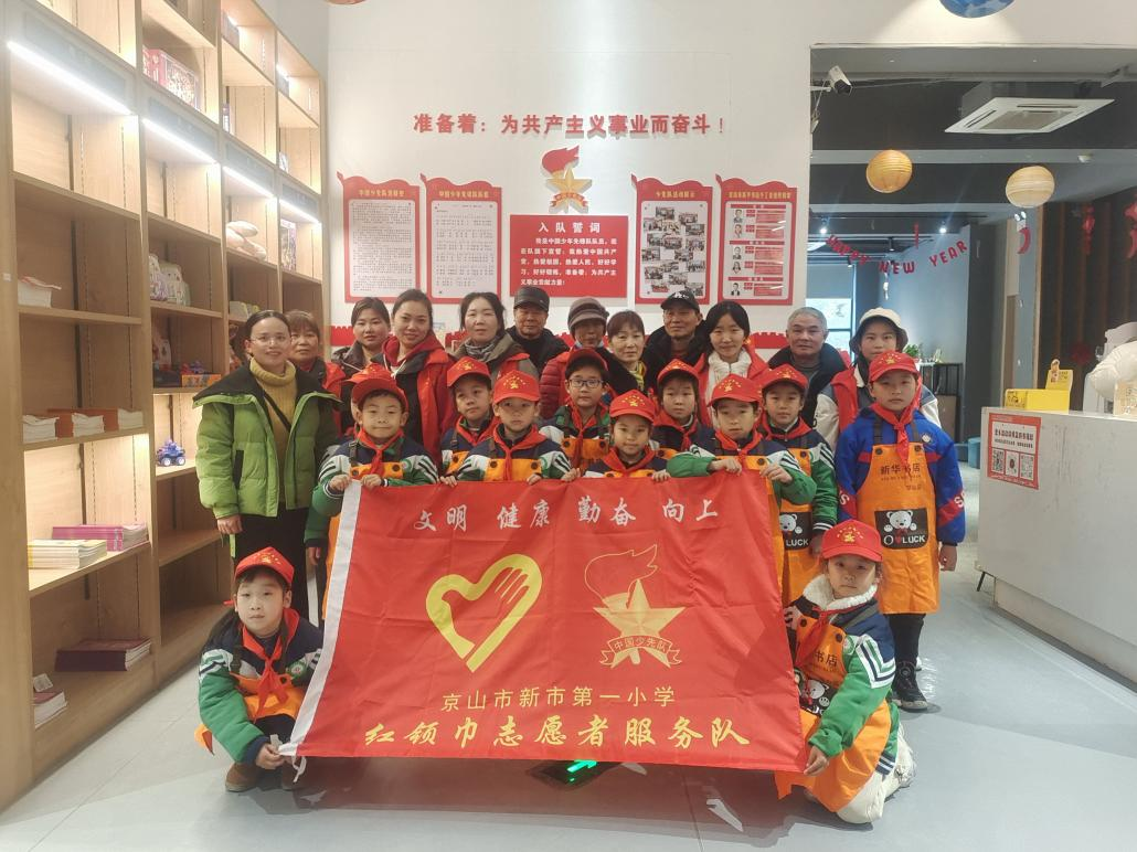 2023年12月30日下午,新市第一小學二(5)中隊的13名少先隊員和家長志愿者們走進新華書店,參與了一場別開生面的“紅領(lǐng)巾”親子志愿服務(wù)活動。在書店工作人員王老師的帶領(lǐng)下,隊員們排著整齊的隊伍,參觀