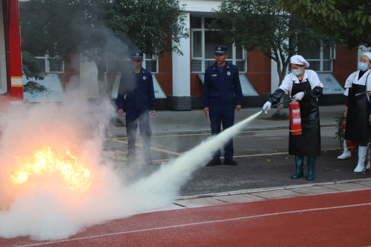 11月6日,紺弩中學(xué)組織食堂工作人員開展消防安全演練活動(dòng)。此次活動(dòng)邀請市消防救援大隊(duì)消防員現(xiàn)場指導(dǎo)。他們首先講解了初級火災(zāi)的正確處置方法,緊急情況下的應(yīng)急疏散和撥打求救電話等內(nèi)容,重點(diǎn)給大家演示了滅火