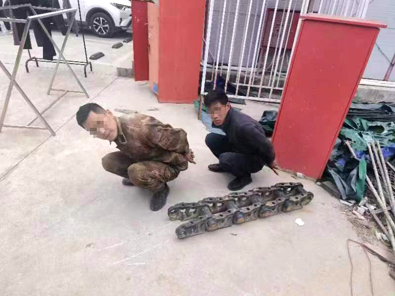 1月7日,京山公安所隊(duì)聯(lián)動(dòng),迅速出擊,僅一小時(shí)就抓獲逃竄盜竊嫌疑人,為被盜企業(yè)挽回?fù)p失,營造了安全穩(wěn)定的治安環(huán)境。(嫌疑人指認(rèn)盜竊的挖掘機(jī)履帶)當(dāng)天下午15時(shí),新市派出所接到某公司負(fù)責(zé)人報(bào)警稱,兩男子