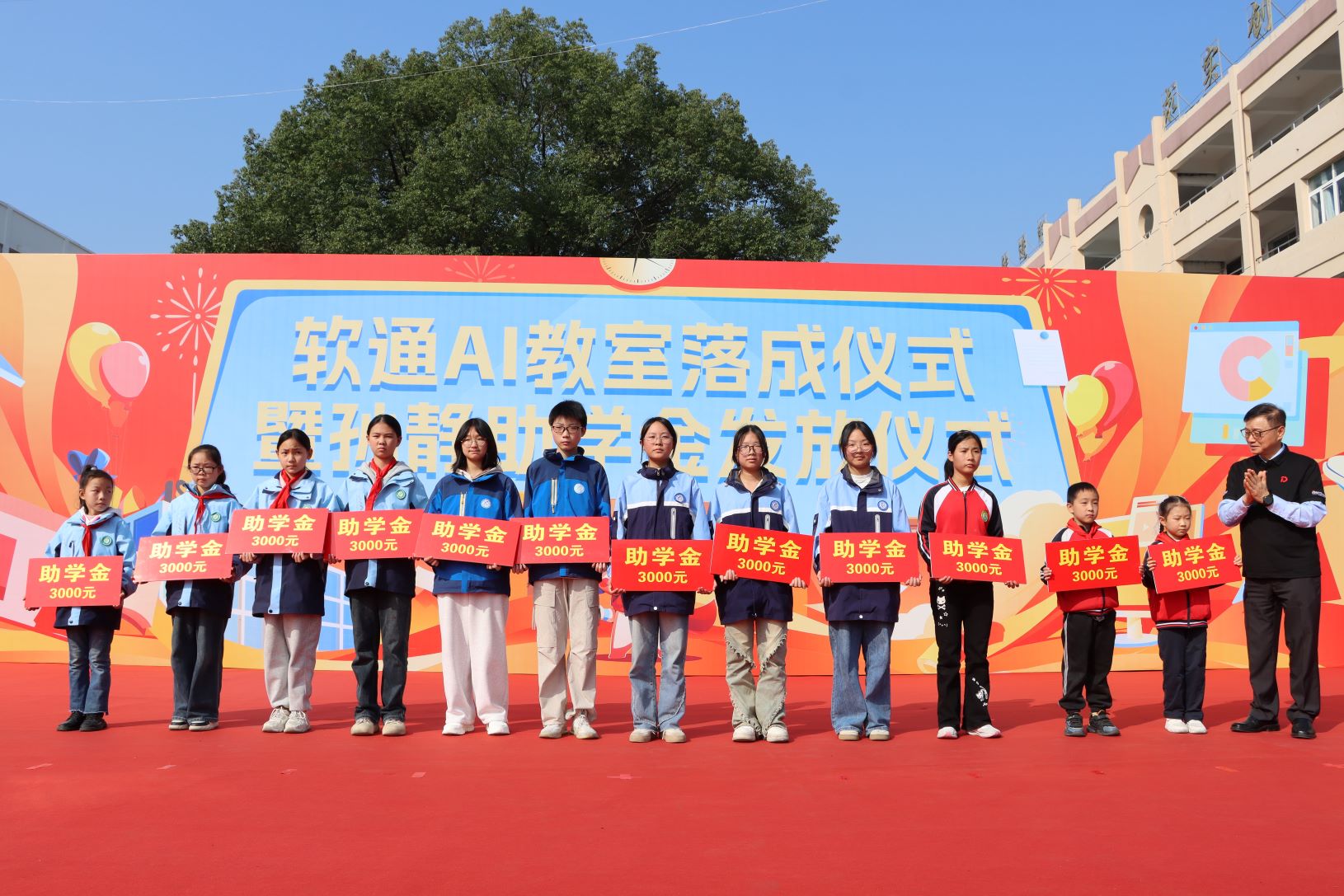 活動現(xiàn)場為59名優(yōu)秀學(xué)生、16名優(yōu)秀教師和先進(jìn)教師、12名受助學(xué)生發(fā)放孫靜助學(xué)金共計10萬元。坪壩鎮(zhèn)初級中學(xué)和坪壩鎮(zhèn)中心小學(xué)向軟通動力集團(tuán)回贈牌匾。