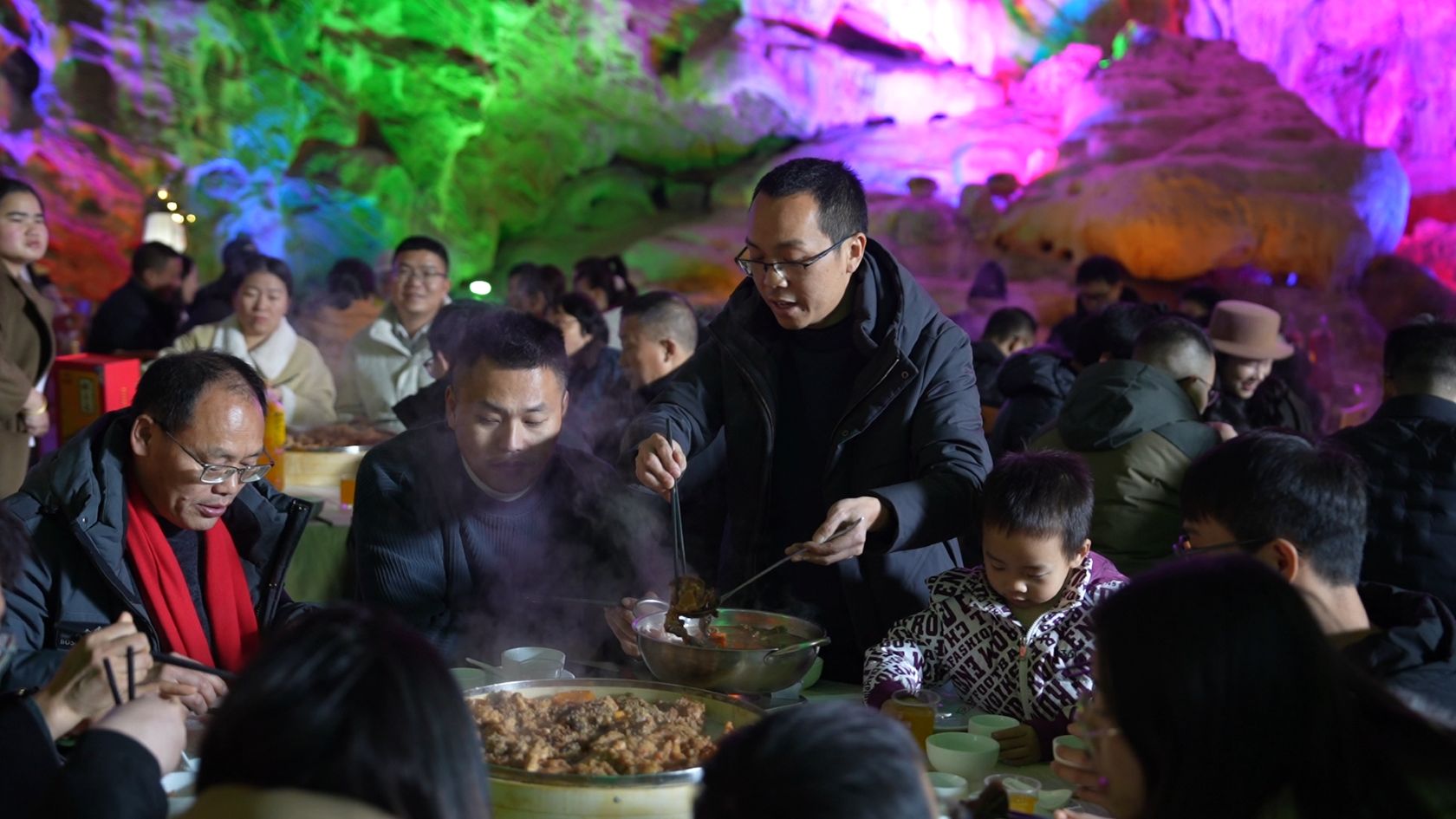 2月8日,京山首屆溶洞農(nóng)家宴在煥新升級的空山洞景區(qū)熱鬧開席。一場融合溶洞奇景、鄉(xiāng)土美食與新春年味的特色活動,吸引300多名游客前來體驗。市政協(xié)主席易紅梅,市委常委、市委辦公室主任王漢豐,副市長張瓊慧參加開園儀式。