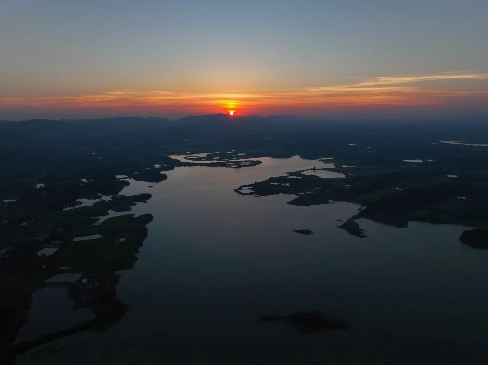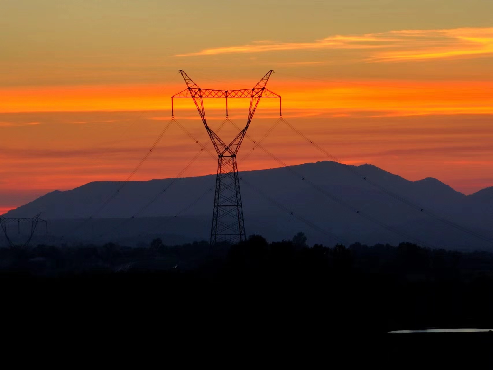 7月21日,橙紅色的晚霞映襯著整個(gè)京山城區(qū)。沐浴著霞光,連輸電線路塔看起來(lái)都滿目驚艷。日落的瞬間,透過(guò)積云層,可以清晰地看到太陽(yáng)“落山”前投射出最后的光芒。(肖朕天)