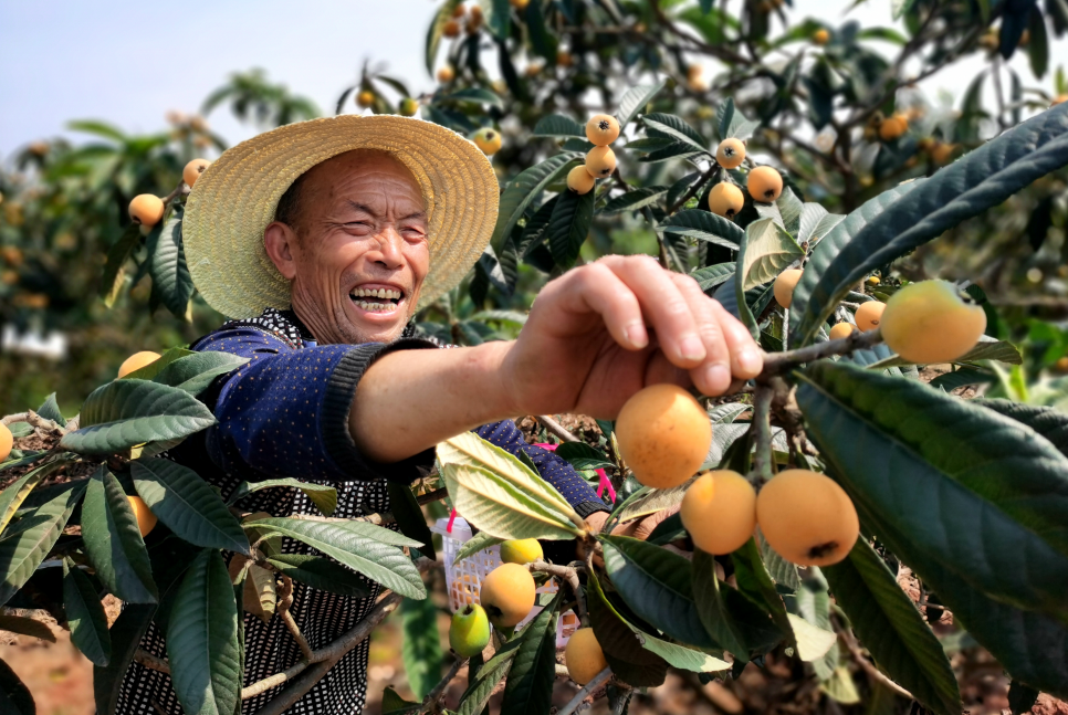 湖北京山孫橋鎮(zhèn)花苑臺(tái)村的農(nóng)戶(hù)采摘枇杷