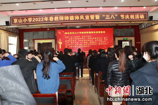 中新網(wǎng)湖北新聞3月18日電 (杜炎炎 黃小明)“廉潔從教,樂于奉獻;勤勉敬業(yè),嚴謹治學(xué);躬身親為,以身示范,做學(xué)生的良師益友……”近日,京山市教育組織百余名教師在京山小學(xué)禮堂開展師德師風(fēng)宣誓活動,