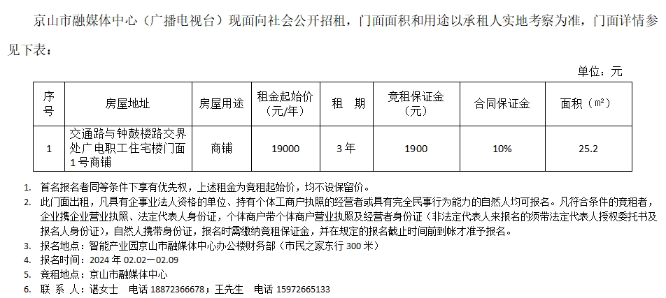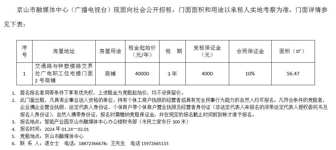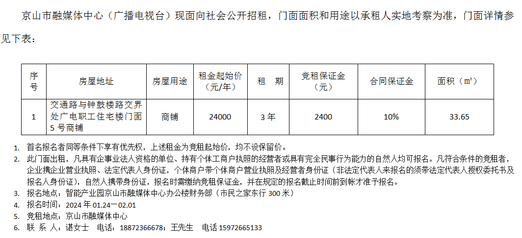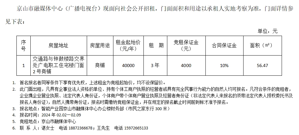 招 租 公 告