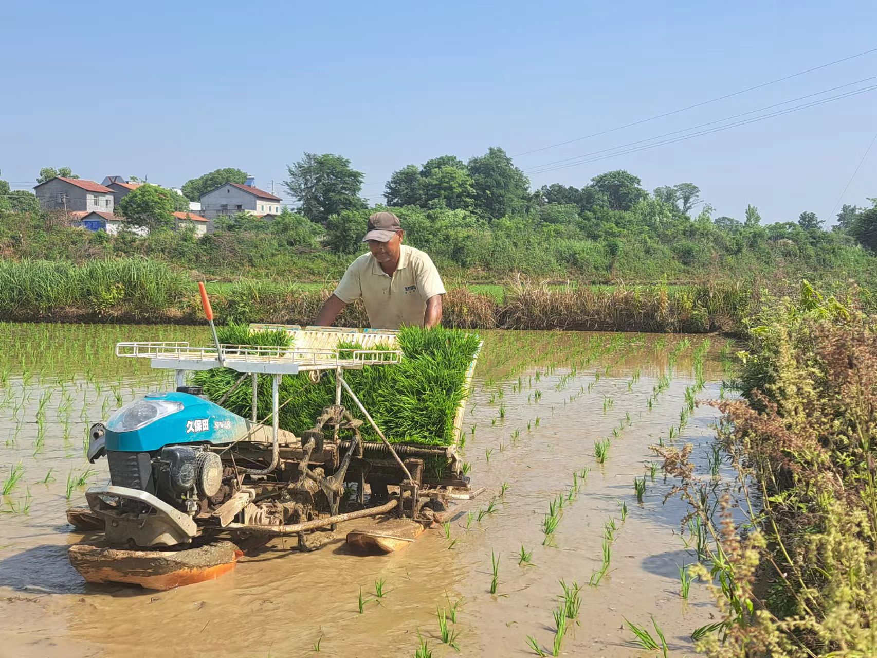 近日,羅店鎮(zhèn)王畈村育秧田和育秧盤的中稻秧苗已達(dá)到插秧標(biāo)準(zhǔn),村民們搶農(nóng)時(shí)、趕進(jìn)度,大家相互幫忙,合力插秧。伴隨著轟鳴的機(jī)器聲,只見插秧機(jī)在稻田里來(lái)回穿梭,綠油油的秧苗被整齊均勻地插入田中,為平整的水田增