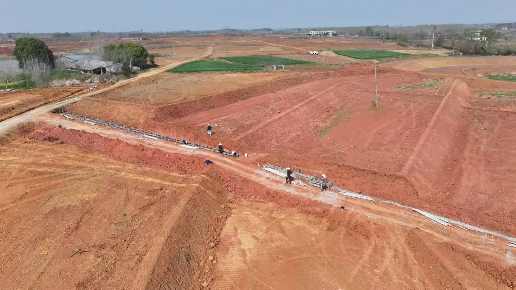 南方咨詢(湖北)有限公司監(jiān)理王華介紹:“目前土地平整、堰塘清淤都已經完成,正在修建田間道路。”