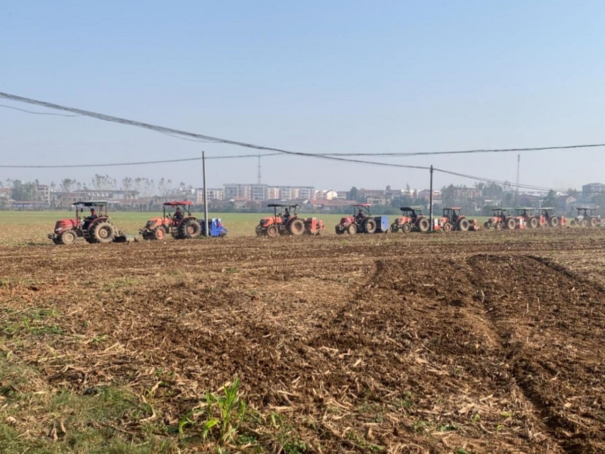 10月23日上午,在羅店鎮(zhèn)袁河村田間,十?dāng)?shù)臺(tái)農(nóng)機(jī)正緊鑼密鼓,成排連片開展作業(yè),田埂上站滿了附近村來瞧熱鬧的農(nóng)戶。京山市農(nóng)機(jī)發(fā)展中心在此組織了相關(guān)市場(chǎng)主體和各鎮(zhèn)農(nóng)機(jī)服務(wù)人員,舉辦京山市“北斗+農(nóng)機(jī)”推廣