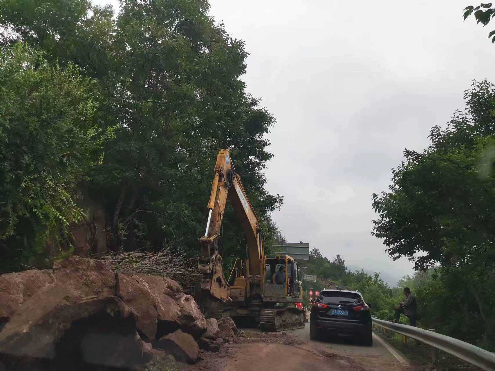 “這里的落石非常影響過(guò)往車輛通行,要盡快清理掉!”7月12日,在綠林鎮(zhèn)廠河村王關(guān)灣小區(qū)路段,一臺(tái)挖掘機(jī)正在清理路旁的山石和泥巴。廠河村王關(guān)灣小區(qū)路段位于京綠線上,車多人多,彎道旁的山石影響視線,特別是