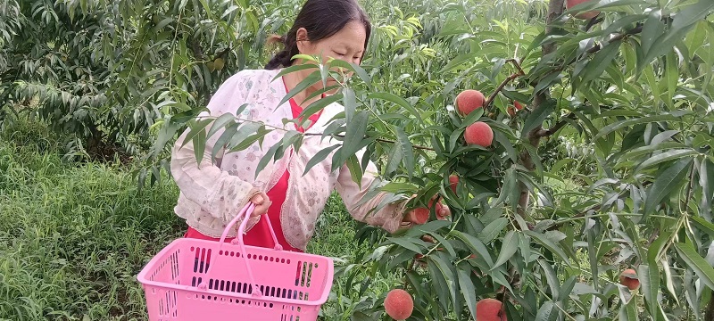 “嘗嘗我家的桃子,絕對(duì)讓你吃了還想再來(lái)一個(gè)?!?月5日,綠林鎮(zhèn)廠河村余老三果園里桃子豐收,果園主人榮美嬌正滿臉喜悅地摘桃子。榮美嬌是在2003年嫁到綠林鎮(zhèn)廠河村的,當(dāng)時(shí)家境不是很好。為了撐起這個(gè)家庭,