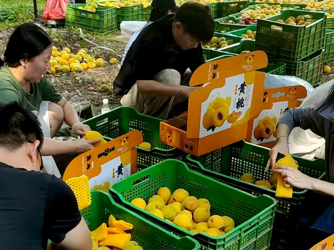 綠林鎮(zhèn):黃桃果熟待采摘 鄉(xiāng)鎮(zhèn)干部助農(nóng)忙