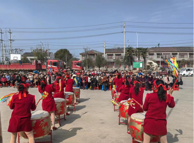 3月8日上午,錢場鎮(zhèn)吳嶺村召集在村200余名婦女群眾開展“慶三八”婦女節(jié)表彰暨文藝匯演活動(dòng),團(tuán)結(jié)全村婦女群眾與黨同心同行?;顒?dòng)現(xiàn)場,八面赤金大鼓整齊排開,8名村舞蹈隊(duì)員手執(zhí)鼓槌,隨著音樂的節(jié)奏一邊擊鼓