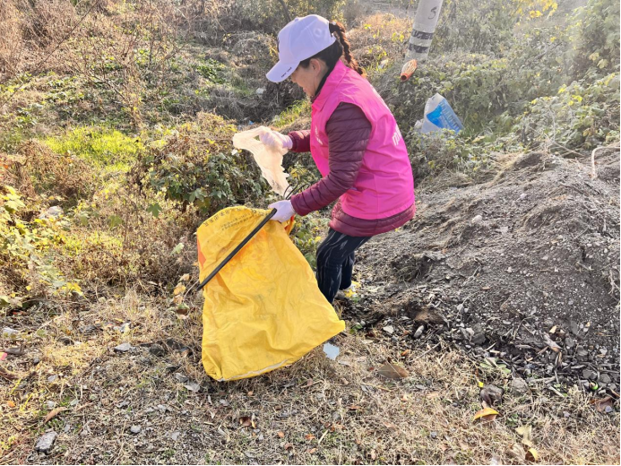 近日,走進(jìn)錢場(chǎng)鎮(zhèn)劉嶺村,只見(jiàn)“巾幗志愿服務(wù)隊(duì)”的成員們身穿“紅馬甲”,拿著掃把、鉗子、垃圾袋,正在寒風(fēng)中清理垃圾,打掃衛(wèi)生。村民劉慧就是“巾幗志愿服務(wù)隊(duì)”的一員,“為了在‘清保行動(dòng)’中獻(xiàn)一份力,我們各