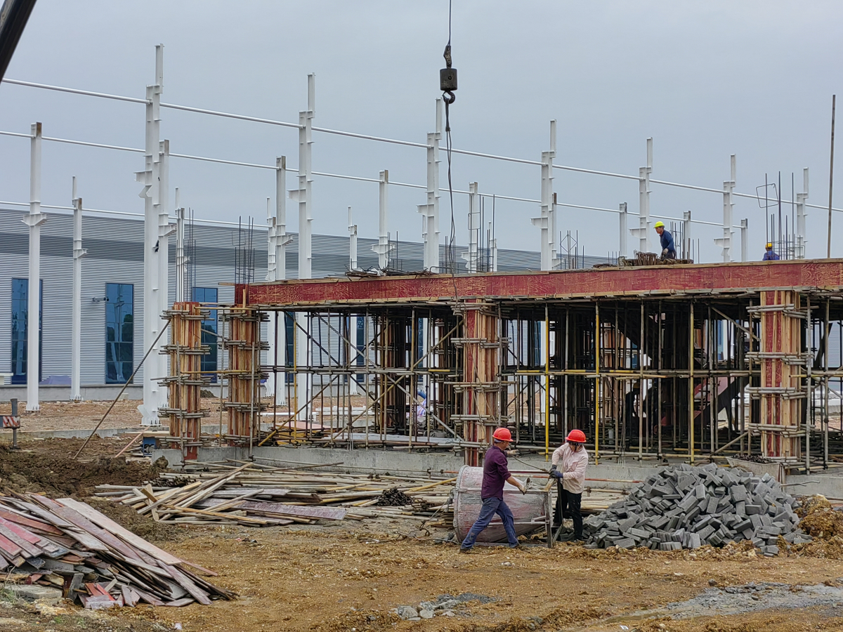 項目建設現(xiàn)場4月18日,在錢場鎮(zhèn)工業(yè)園湖北核正過濾科技有限公司項目施工現(xiàn)場,十幾名施工人員正搭設模架、綁扎鋼筋、砌筑圍堰,塔吊機正運送建筑材料,商砼車正澆筑混凝土……園區(qū)一派熱火朝天的建設景象。據了解