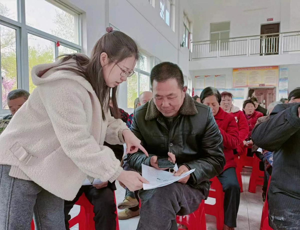 科技特派員陳天春正在指導(dǎo)農(nóng)民朋友訂制“營養(yǎng)套餐”“請(qǐng)大家拿出手機(jī),跟著我一起來操作?!?月25日上午,春回大地,萬物復(fù)蘇,又到了春播春種時(shí)節(jié)。在宋河鎮(zhèn)白竹村村民議事堂里,該鎮(zhèn)農(nóng)技服務(wù)中心駐白竹村科技特