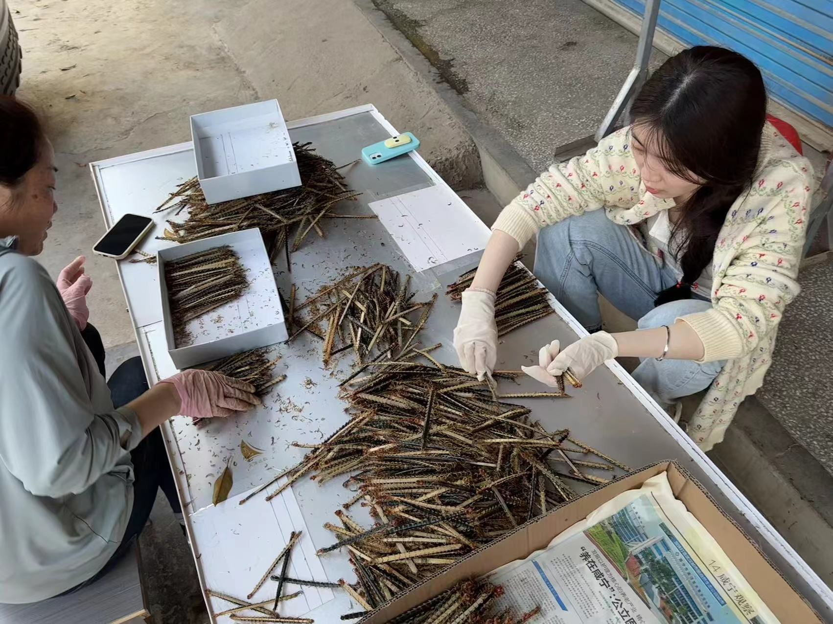 “竹片串好的大蜈蚣能賣(mài)三塊,小點(diǎn)的一兩塊錢(qián),碰到悶熱天氣蜈蚣多,一晚上能捉上千條,不想串起來(lái)就按斤賣(mài),一斤260塊錢(qián)左右?!弊津隍嫉拇迕裉锵壬f(shuō),“抓到蜈蚣后要及時(shí)用竹片撐開(kāi),才有個(gè)好品相,從3月底到5月底,再往后,氣溫高了就不好抓了?!?/p>