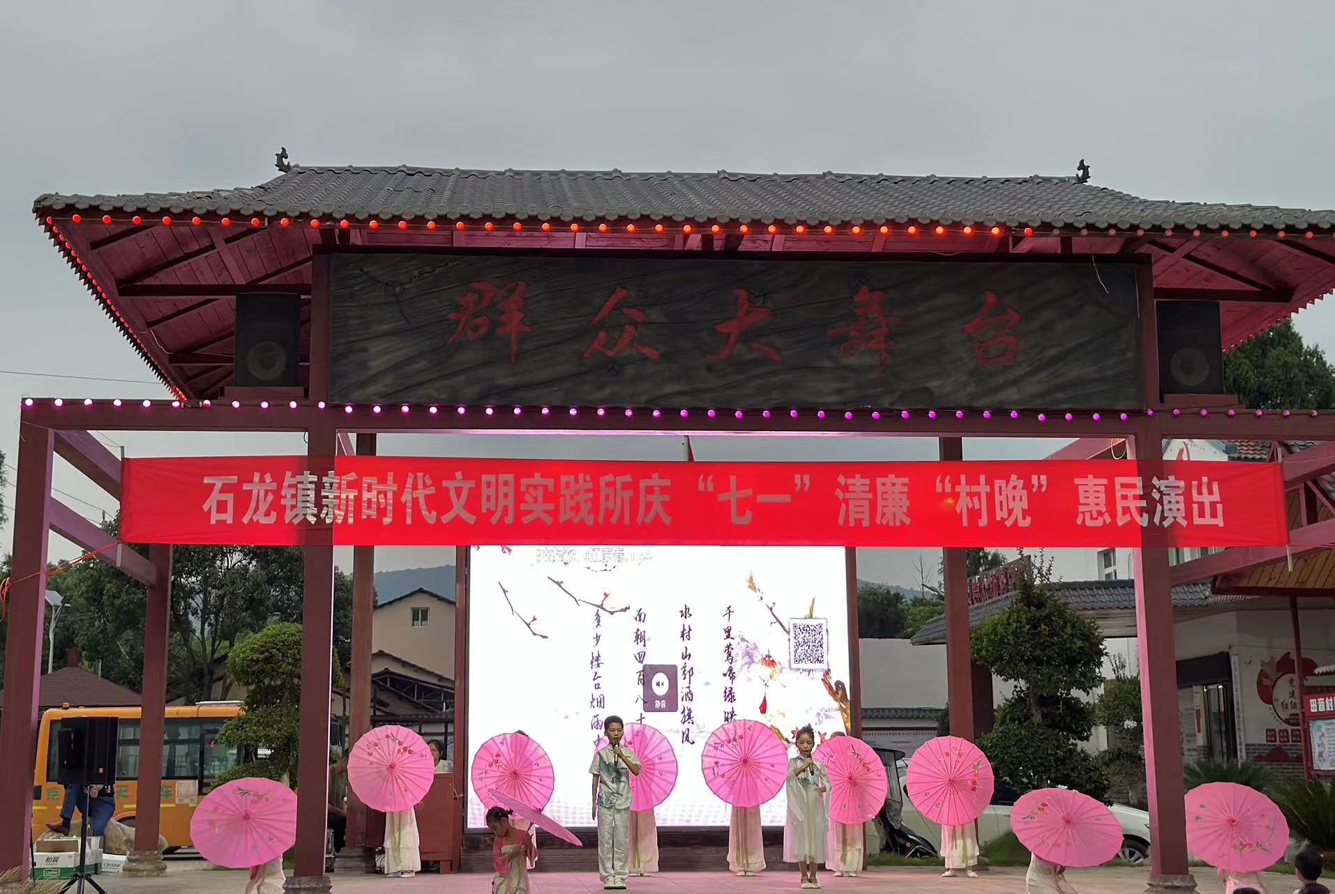 6月26日晚,石龍鎮(zhèn)新時代文明實踐所聯(lián)合鎮(zhèn)文體站在田音村開展慶“七一”清廉“村晚”惠民演出。各村(社區(qū))黨員干部、工作人員、居民群眾歡聚一堂,共同慶祝中國共產(chǎn)黨成立103周年。