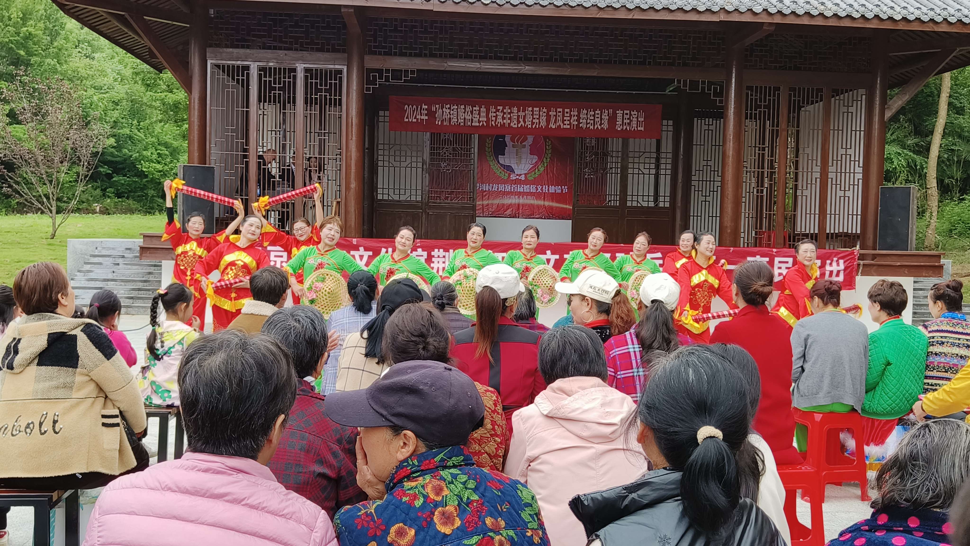 5月4日,孫橋鎮(zhèn)梭羅河村的文化廣場(chǎng)上,開(kāi)展了一場(chǎng)盛大的歡慶梭羅河村龍鳳寨婚俗盛典暨文藝演出,吸引眾多村民的踴躍參與,還吸引了四方游客共襄盛舉。活動(dòng)當(dāng)天,在歡快的鑼鼓聲中,開(kāi)場(chǎng)舞蹈《歡聚一堂》點(diǎn)燃了整場(chǎng)