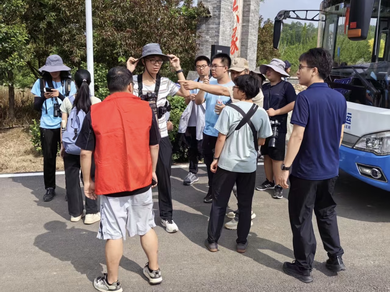 6月14日,在位于孫橋鎮(zhèn)尖峰嶺村紅星六隊(duì)的賞鳥活動(dòng)現(xiàn)場,來自香港大學(xué)、北京大學(xué)、上海交通大學(xué)、南開大學(xué)、武漢大學(xué)等學(xué)校的大學(xué)生們手持望遠(yuǎn)鏡,仔細(xì)觀察著每一只鳥兒的姿態(tài),不時(shí)交流著自己的發(fā)現(xiàn)。