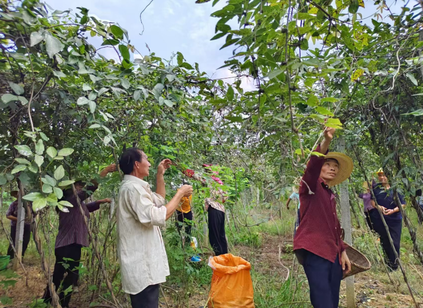 “我平時在家種點油茶,農(nóng)閑時就來基地幫忙,除草、修枝、摘果,一年下來能有幾千元的收入?!?月19日,三陽鎮(zhèn)普濟(jì)寺村六組脫貧戶李為香一邊采摘著青果一邊笑著說道?! ∽哌M(jìn)普濟(jì)寺村九組八月瓜中草藥基地,