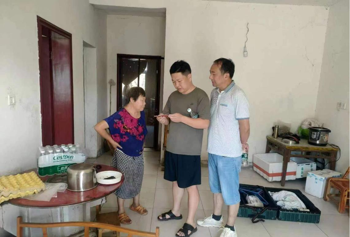 “老人家,天熱我們來給您送點消暑藥品。最近持續(xù)高溫,像中午溫度比較高的時候就不要出門了。村委會里設(shè)置了納涼點,有空調(diào)、茶水……您沒事可以去乘乘涼。身體不舒服時記得趕快跟我們或者醫(yī)生聯(lián)系……”8月7日,
