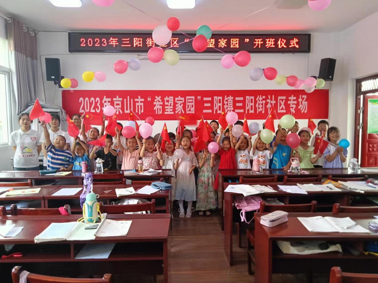 7月4日上午9點(diǎn),三陽鎮(zhèn)三陽街社區(qū)、光武嶺村、賀畈村三個(gè)希望家園建設(shè)點(diǎn)分別舉辦了2023年暑期希望家園開班啟動(dòng)儀式。在11名志愿者的陪伴下,101名留守兒童將度過一段不同以往的暑期生活。此次希望家園活