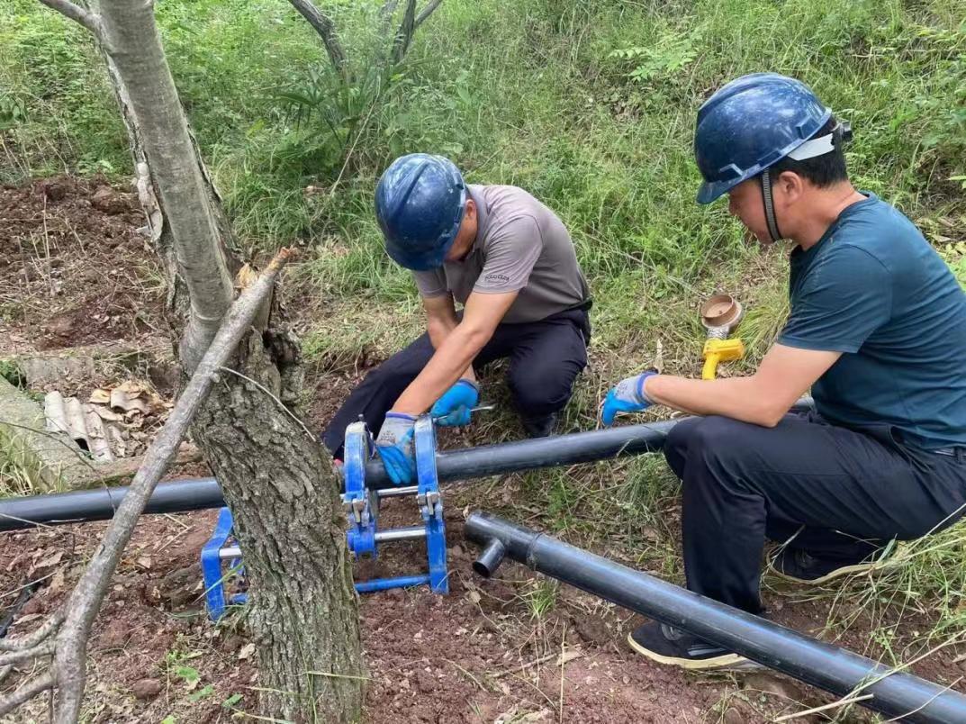 (工作人員正在施工) 眼下正值水稻插秧的關(guān)鍵時(shí)期,灌溉用水量需求巨大,受持續(xù)高溫少雨氣候影響,三陽鎮(zhèn)部分地區(qū)旱情顯現(xiàn)并持續(xù)發(fā)展,人地用水矛盾凸顯?! ∵B日來,三陽鎮(zhèn)水管站聯(lián)合光武嶺村黨支部召開小組村
