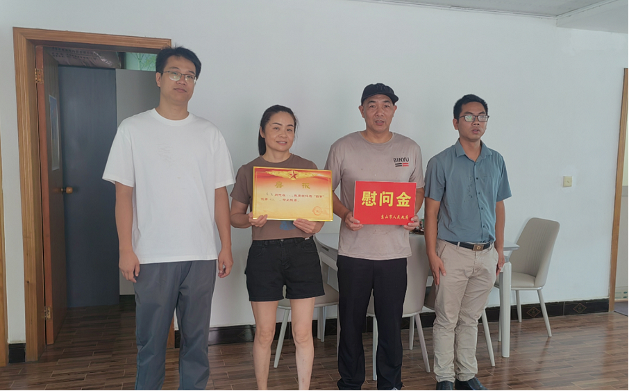 7月24日,市人武部、市退役軍人事務(wù)局及溫泉街道聯(lián)合,共同為榮立三等功的現(xiàn)役軍人家屬送去喜報(bào)和慰問(wèn)金?!盀閲?guó)防事業(yè)做出力所能及的貢獻(xiàn)是一種責(zé)任和榮幸,孩子能有今天的成績(jī),離不開(kāi)國(guó)家的政策支持和部隊(duì)的精