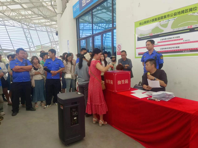 6月6日,溫泉街道賽事中心夜市抽簽定攤位活動在京山市國際網(wǎng)球賽事中心平臺西區(qū)開啟,眾多商戶到現(xiàn)場有序抽簽。下午2時不到,商戶們已早早地到此等候,街道綜合執(zhí)法中心執(zhí)法人員和志愿者們?yōu)榇_保抽簽過程有序進(jìn)行