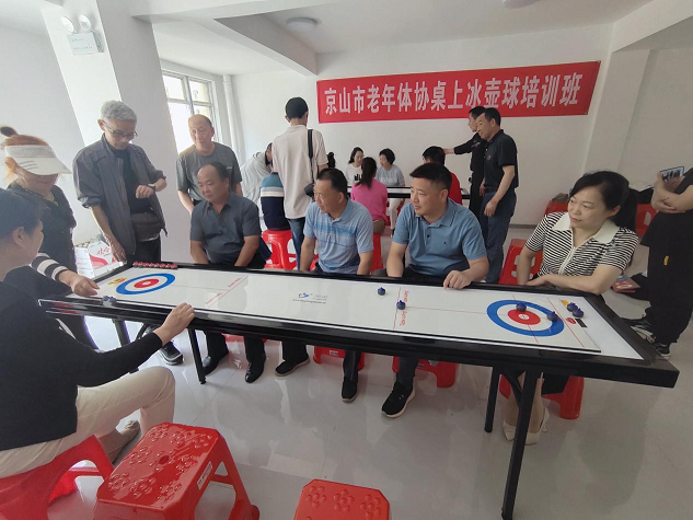桌上冰壺球是新興的體育運(yùn)動(dòng)項(xiàng)目。5月14日,京山市老年體協(xié)聯(lián)合溫泉街道老年協(xié)會(huì)、溫泉街道文體站舉辦2024年京山市老年體協(xié)桌上冰壺球培訓(xùn)班,共30多名老年體育骨干參加。培訓(xùn)講師對(duì)桌上冰壺運(yùn)動(dòng)規(guī)則、投擲