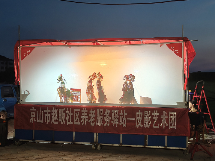 “汪大爺,一起去社區(qū)養(yǎng)老服務(wù)驛站看皮影戲!”5月9日傍晚,溫泉街道趙畈社區(qū)的李阿姨和老伴正一起朝著趙畈社區(qū)養(yǎng)老服務(wù)驛站走去。皮影藝術(shù)團(tuán)團(tuán)長(zhǎng)李紹秀是一名81歲的老人,在了解到趙畈社區(qū)有意舉辦一場(chǎng)非遺文化