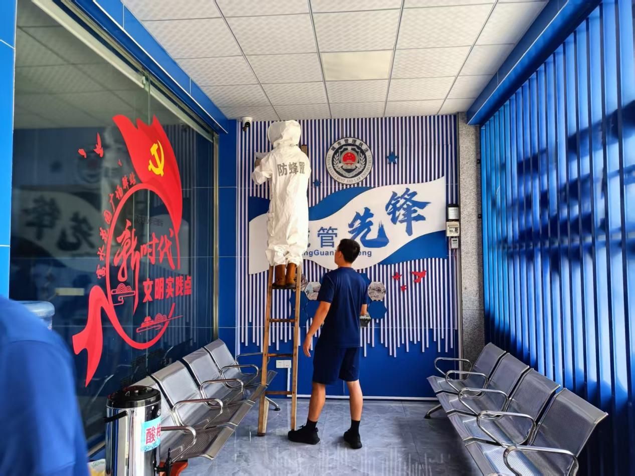 7月14日,新市街道綜合執(zhí)法中心富水花園城管驛站工作人員到崗時(shí),在驛站天花板角落發(fā)現(xiàn)一枚馬蜂窩,周?chē)旭R蜂盤(pán)旋,對(duì)工作人員及往來(lái)居民造成安全威脅。